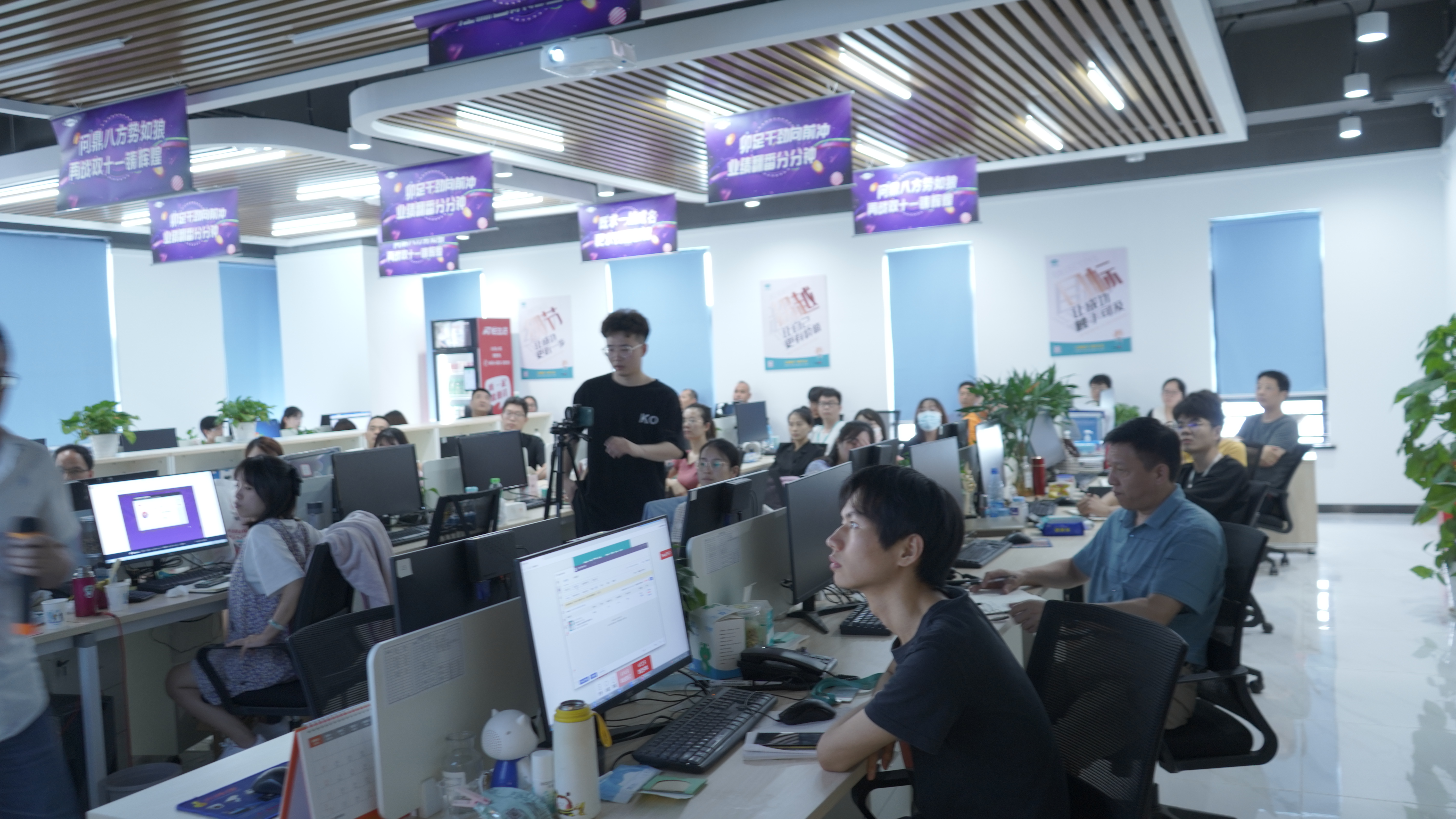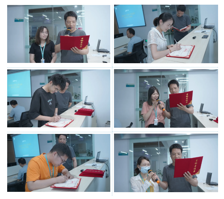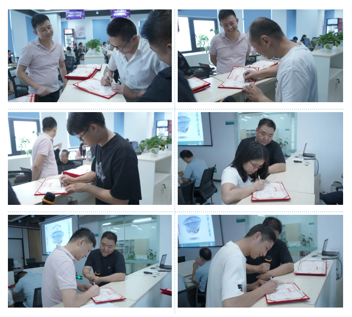 電商部關(guān)鍵崗位員工匯報(bào)工作。電商部各店鋪負(fù)責(zé)人及其部門經(jīng)理簽署下半年業(yè)績(jī)目標(biāo)責(zé)任狀。